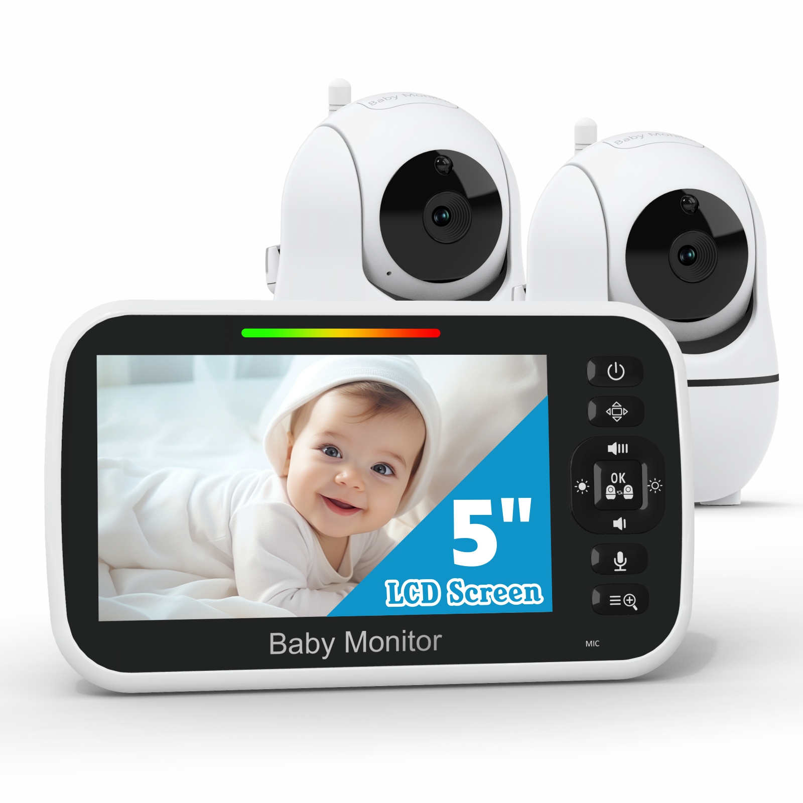 Smart WiFi Baby Monitor 5-inch 1080p Display HD NightVision Remote Pan Tilt Zoom 2-Way Talk Free Smart Phone App Baby Monitor